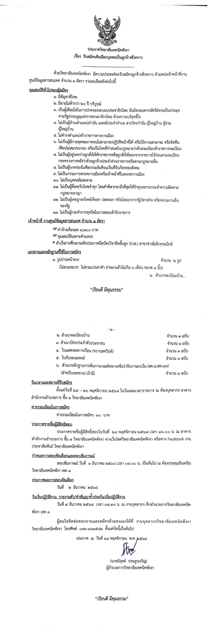 ประกาศรับสมัครลูกจ้างตำแหน่งเจ้าหน้าที่งานศูนย์ข้อมูล