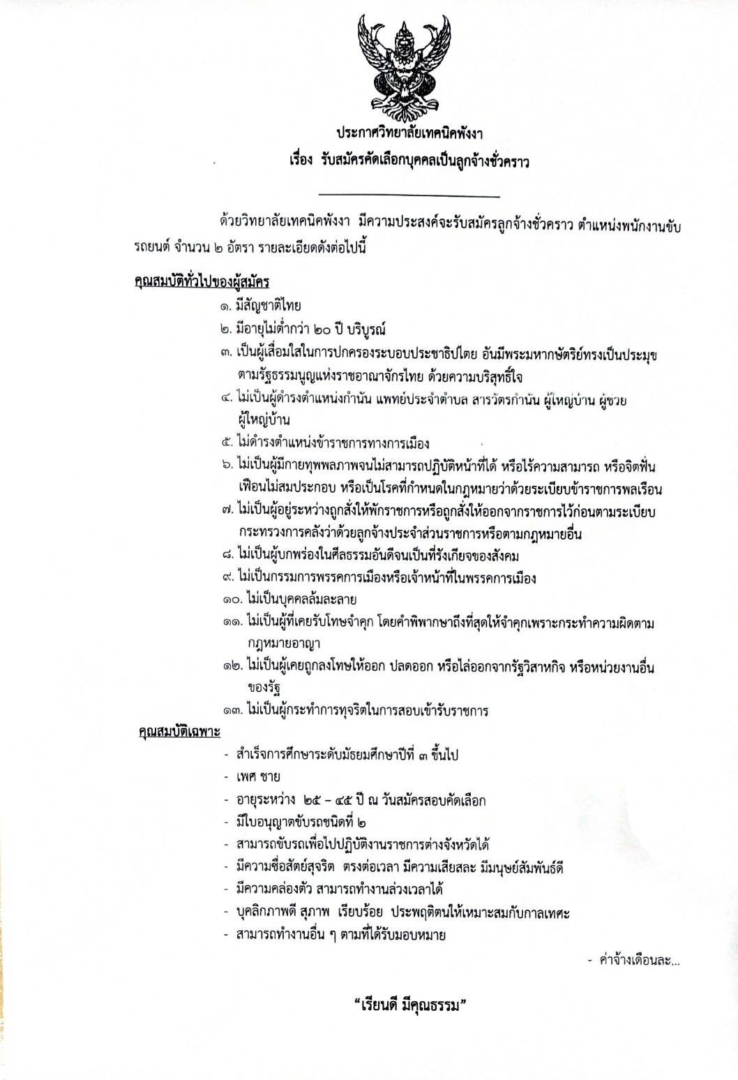 ประกาศรับสมัครลูกจ้างชั่วคราว ตำแหน่ง พนักงานขับรถ